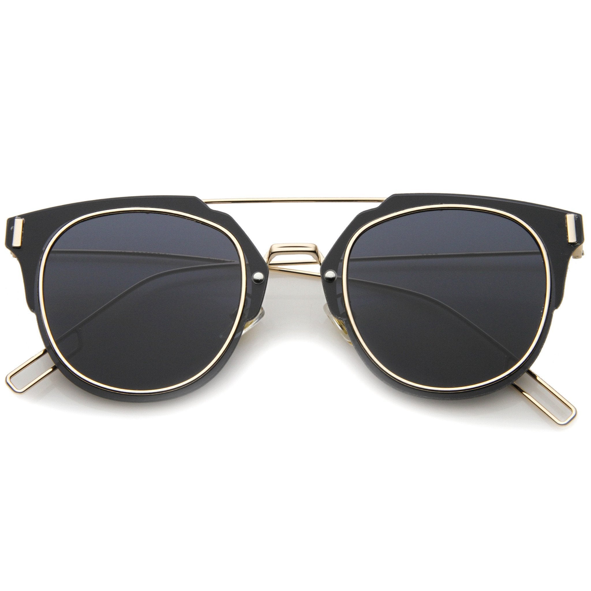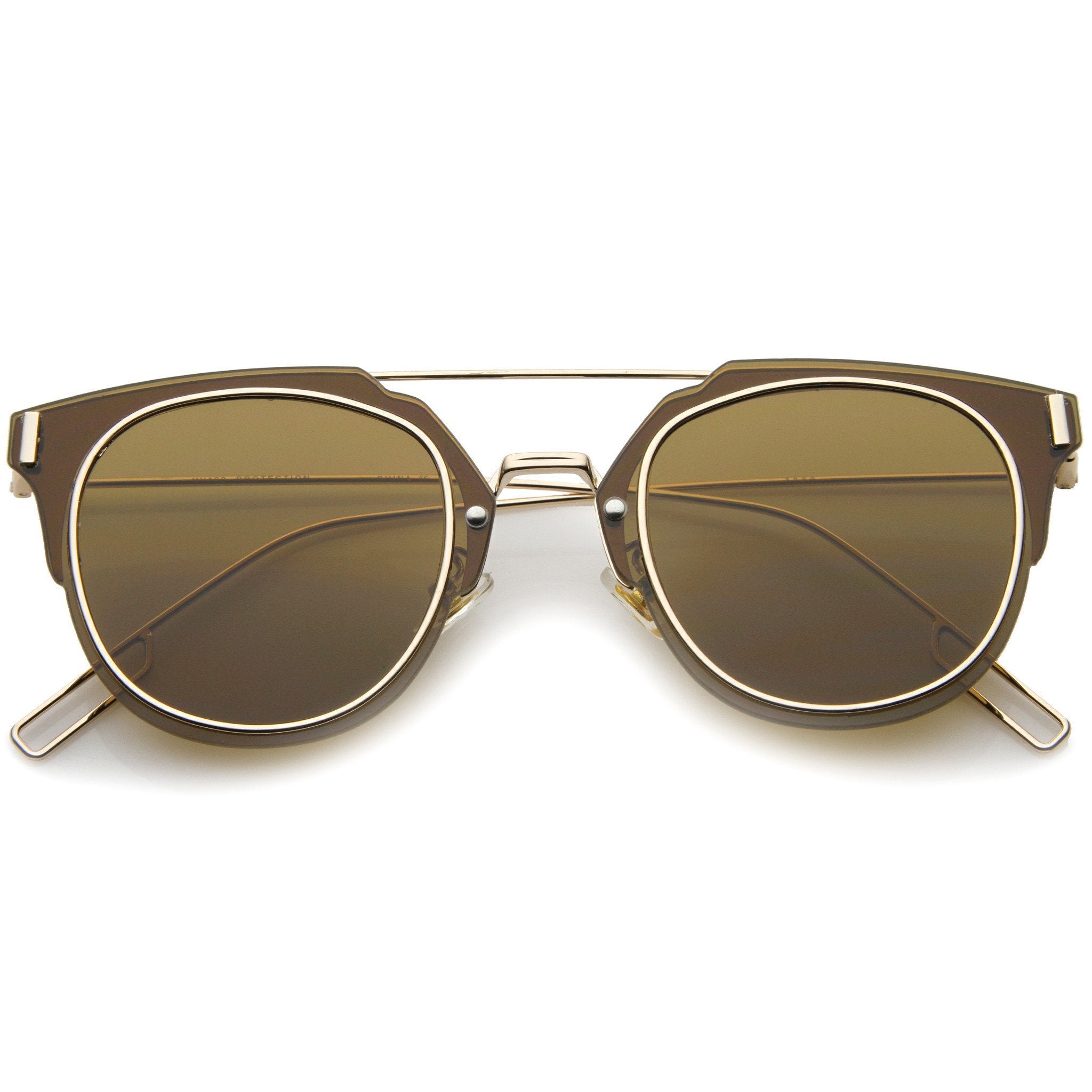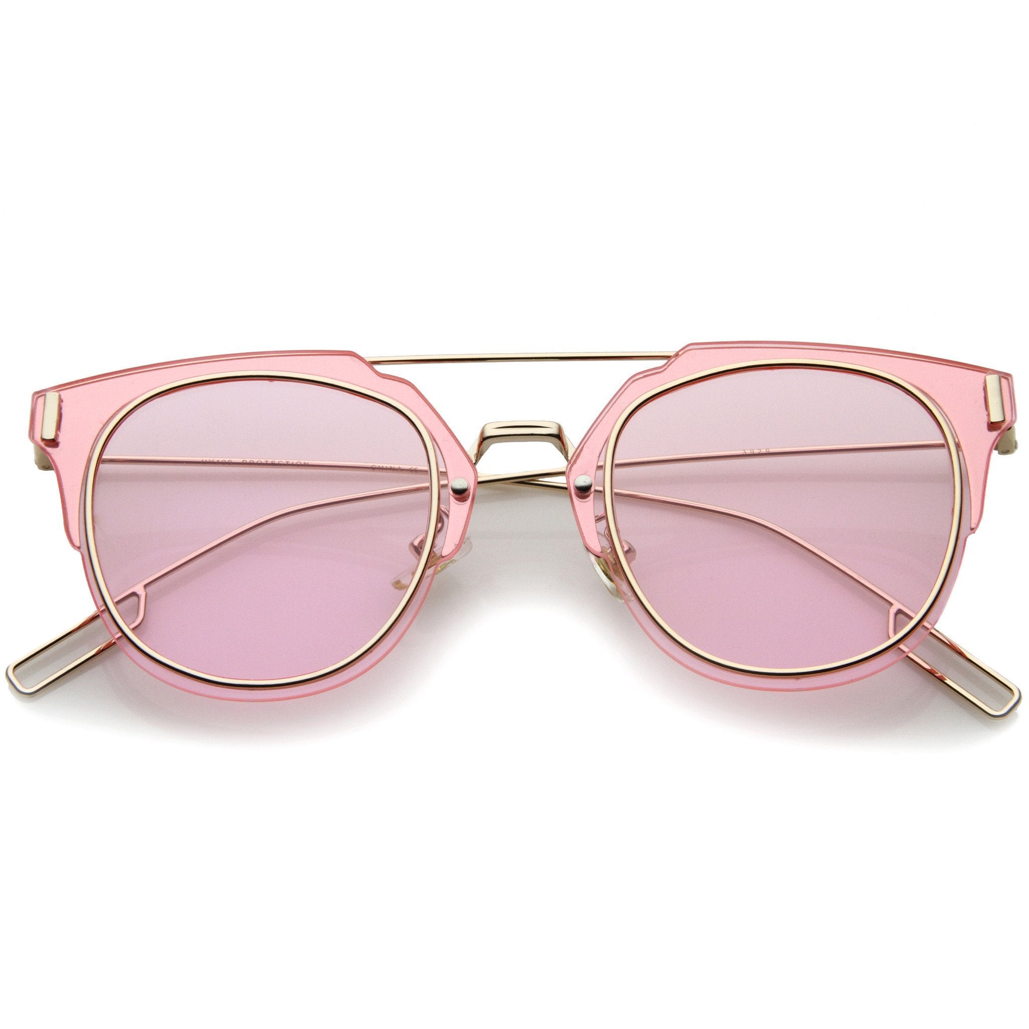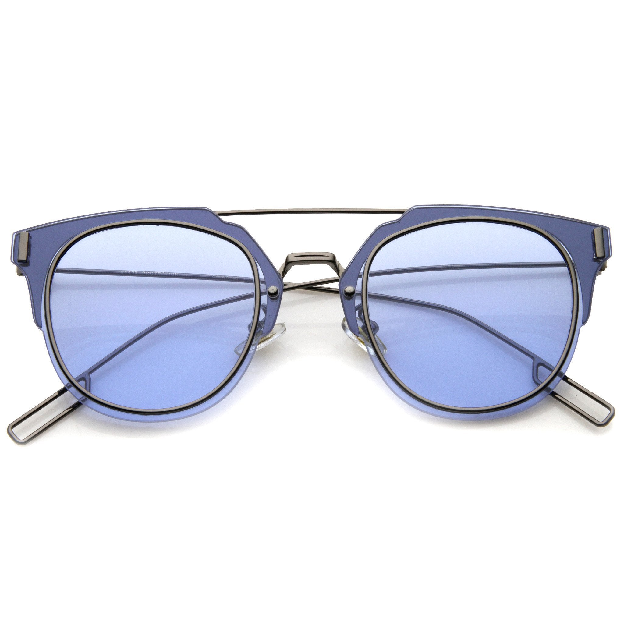 Another wonderful addition to our flat lens pantos collection, these avant-garde inner-rimmed deconstructed pantos shaped sunglasses are engineered with a feather-light construction frame. Modern features also include ultra slim wired hook temples, double-bridged brow, and a flat lens for a stylish flush look. Made from a metal wire based frame, English style nose pieces and UV400 protected polycarbonate mirrored lens.
