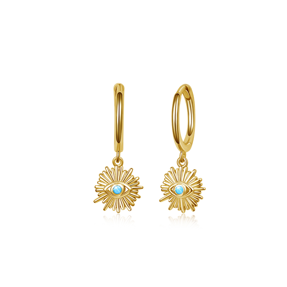 A pair of delicate "unique evil eye" hang from these shimmering huggeie earrings, a perfect blend of the two. Exquisite and unique dangle earrings make women exude special and noble elegance.