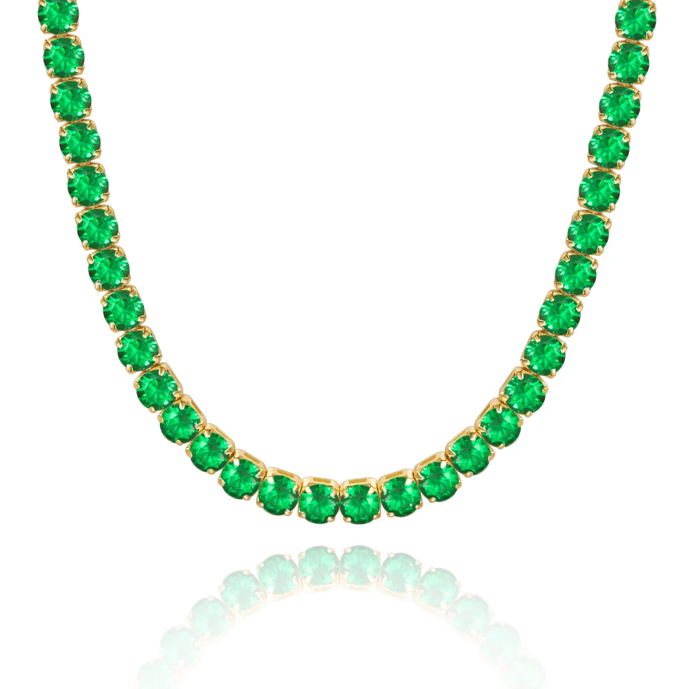 Elevate your style with our Green Square Tennis Necklace, a captivating piece that exudes sophistication and a touch of daring flair. This striking necklace is the perfect accessory for those who appreciate the beauty of bold colors combined with a classic design.
