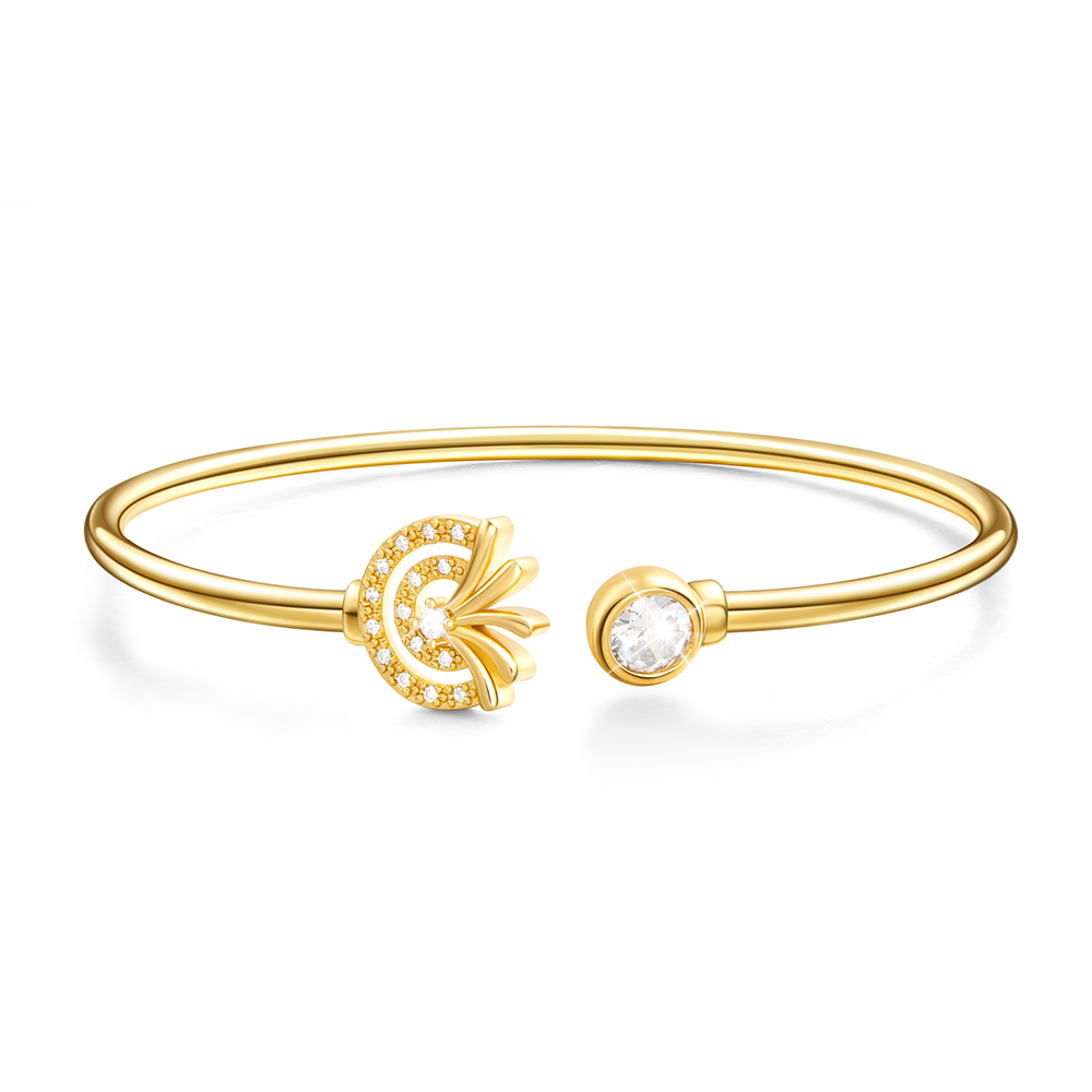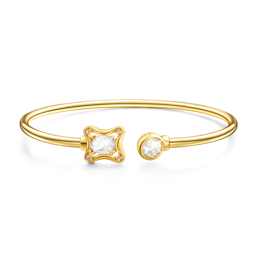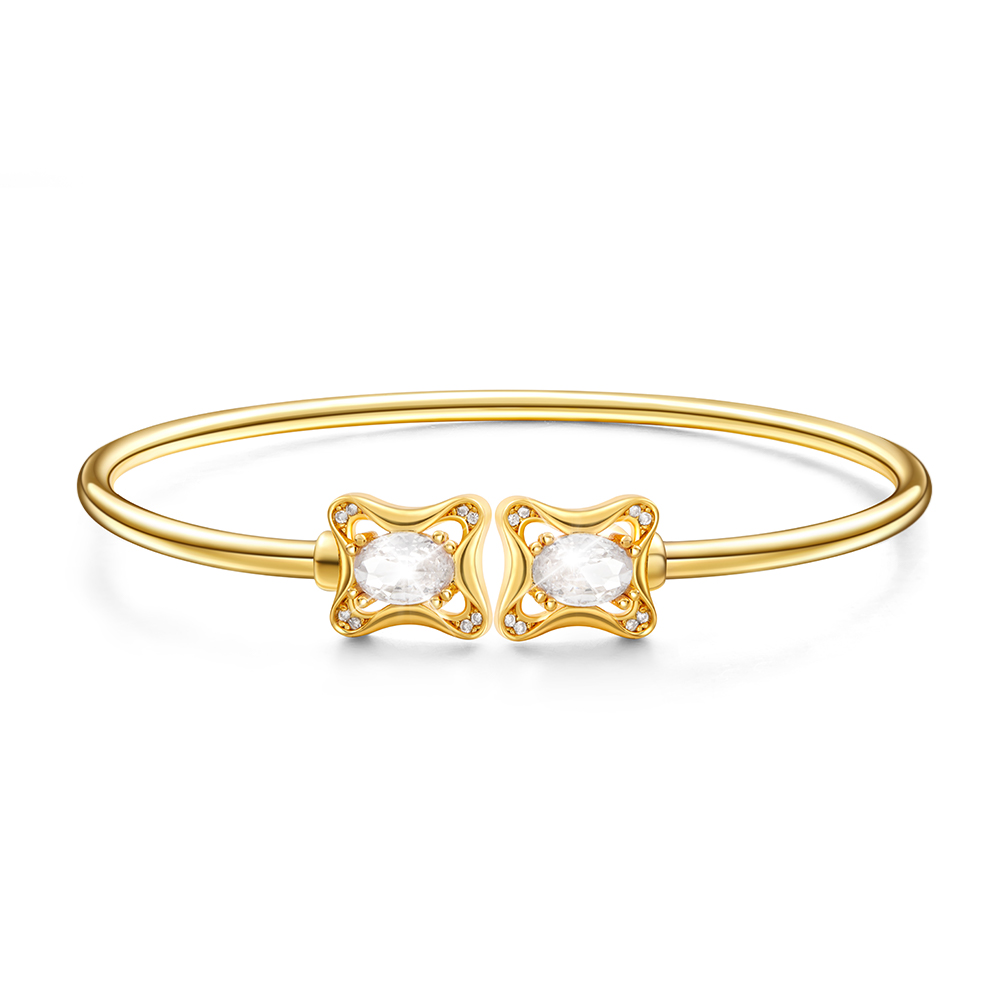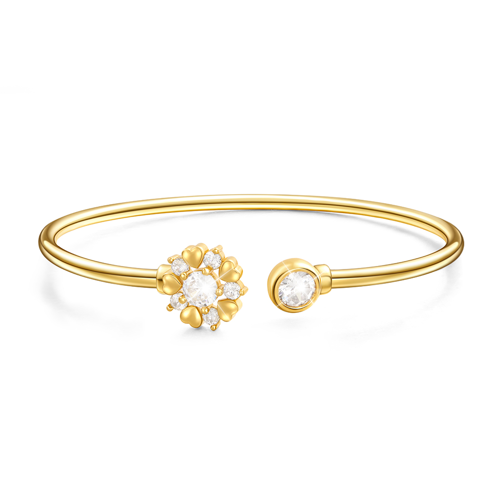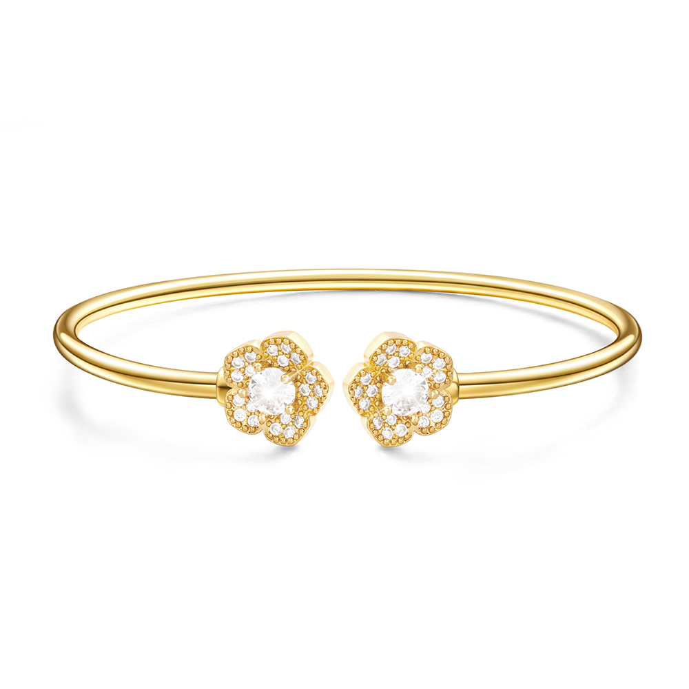 Gold Diamond Simulate Bangle with Flowers Bracelet