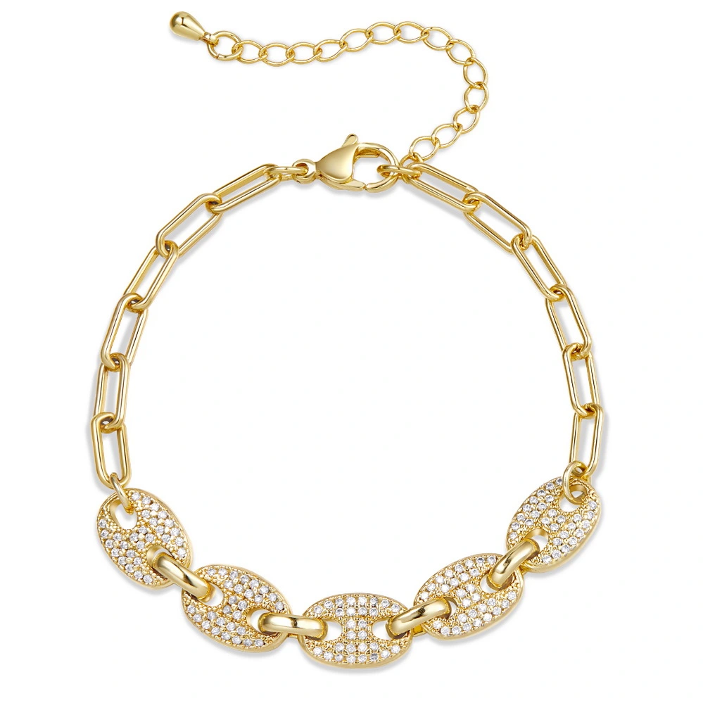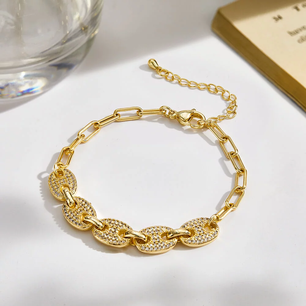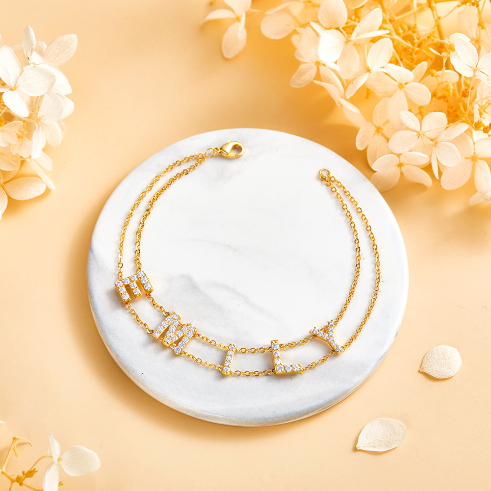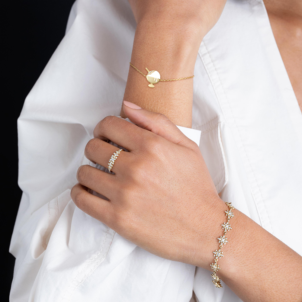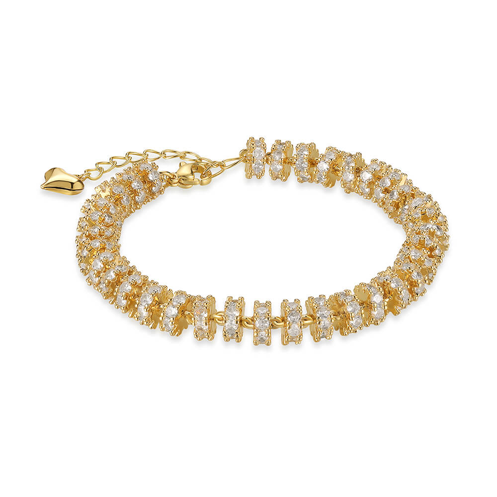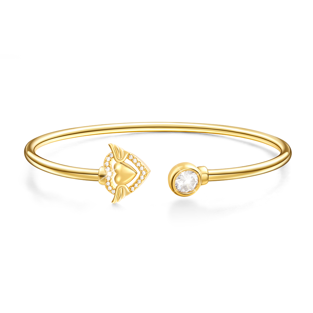 Gold Diamond Simulate Bangle with Flowers Bracelet