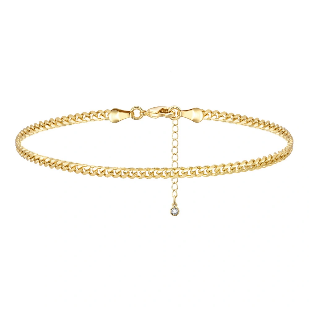 3mm Dainty 14k Gold Plated Cuban Link Foot Chain