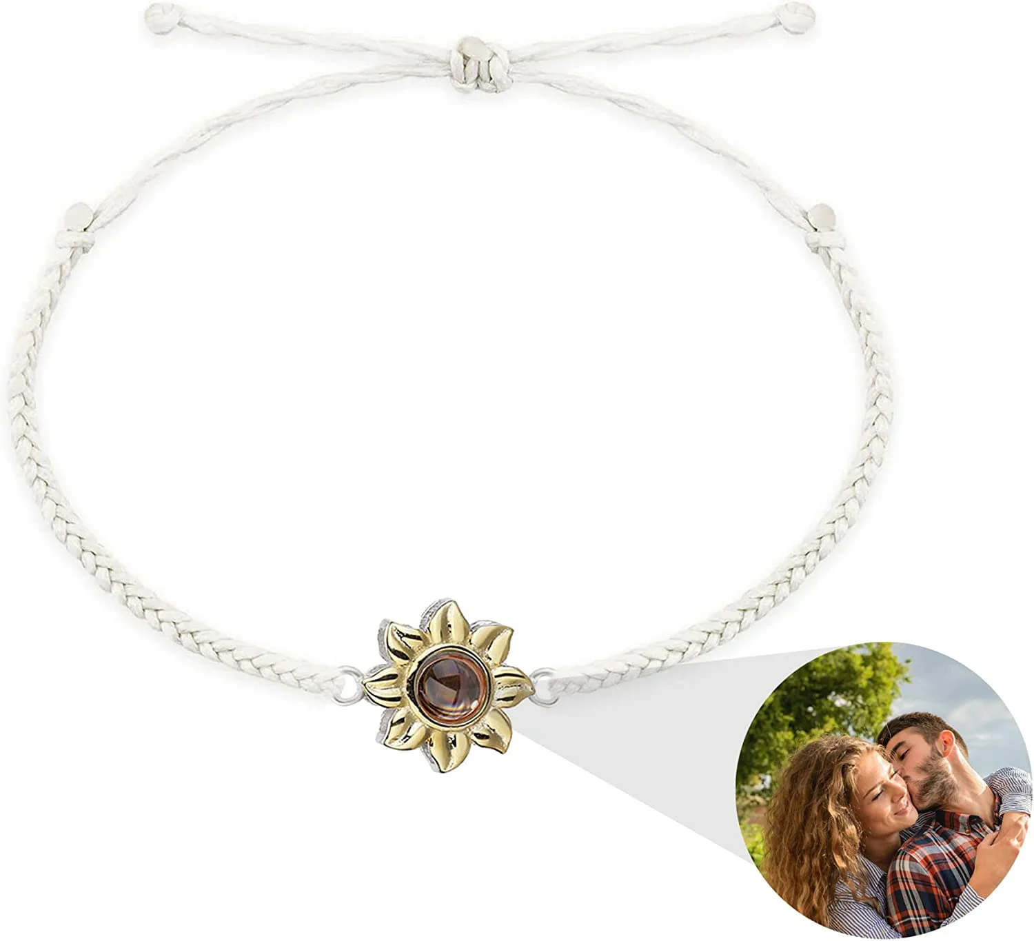 Handmade Braided Rope Sunflower Photo Projection Bracelet