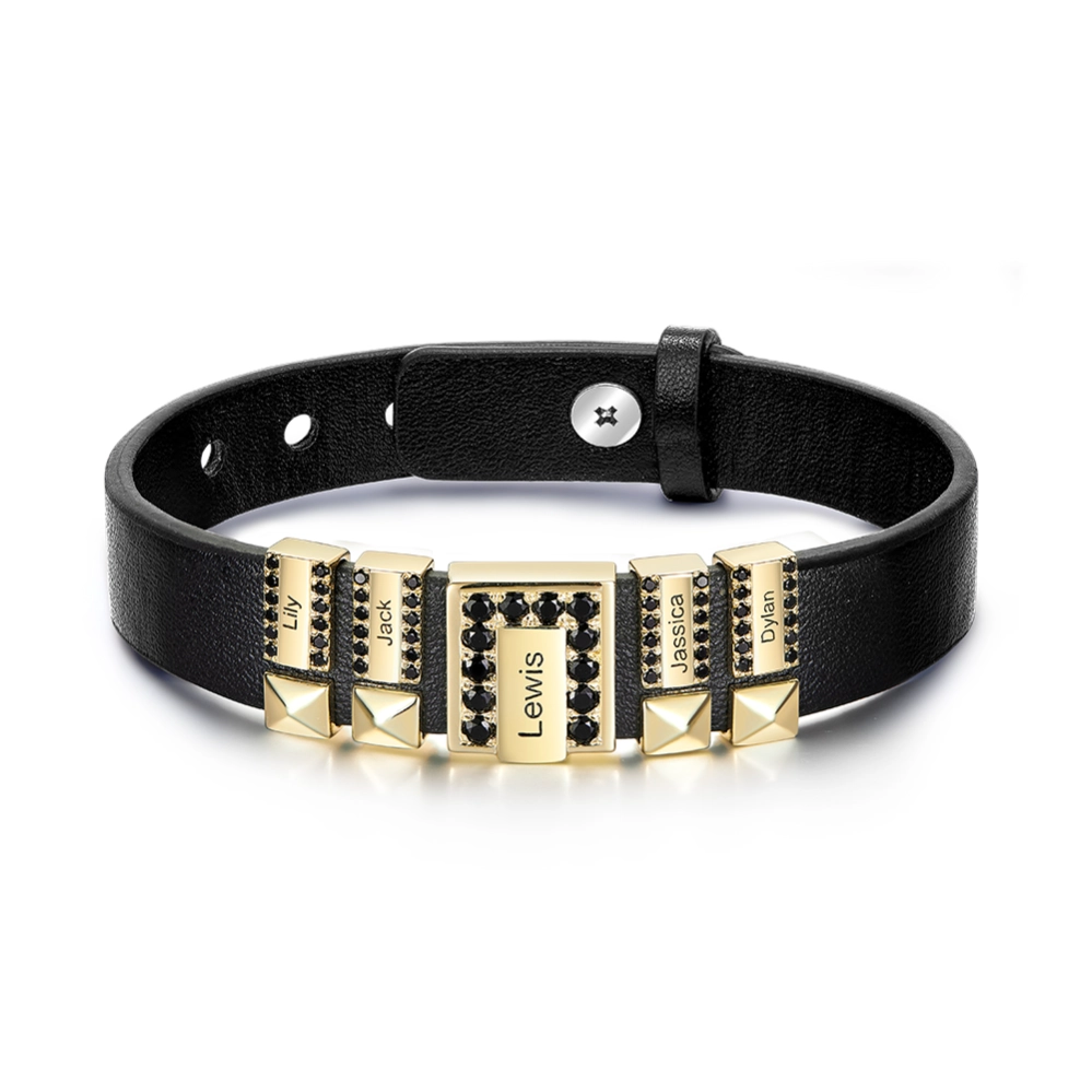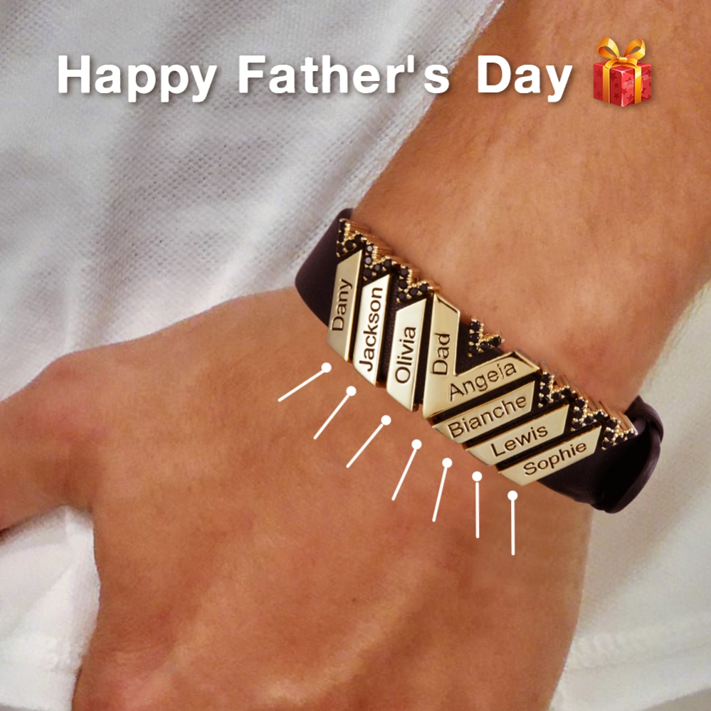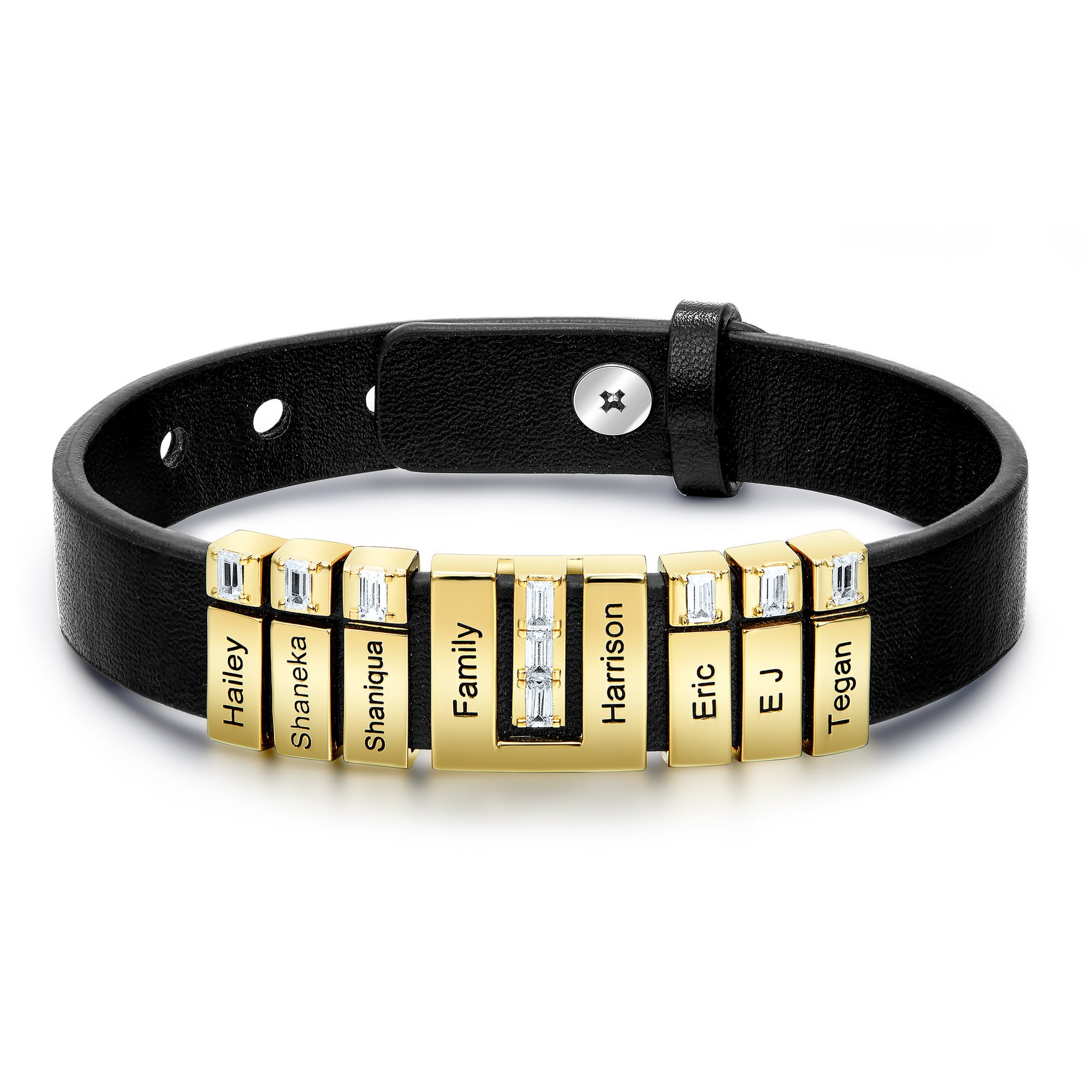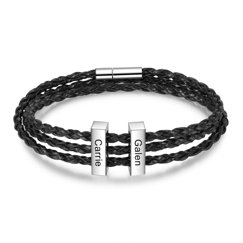 Personalized Men's Leather Bracelet with 1-8 Custom Names Beads
