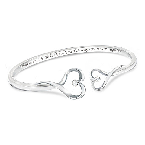 Always My Daughter Engraved Heart-Shaped Bracelet in Sterling Silver