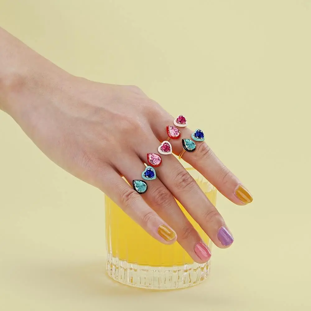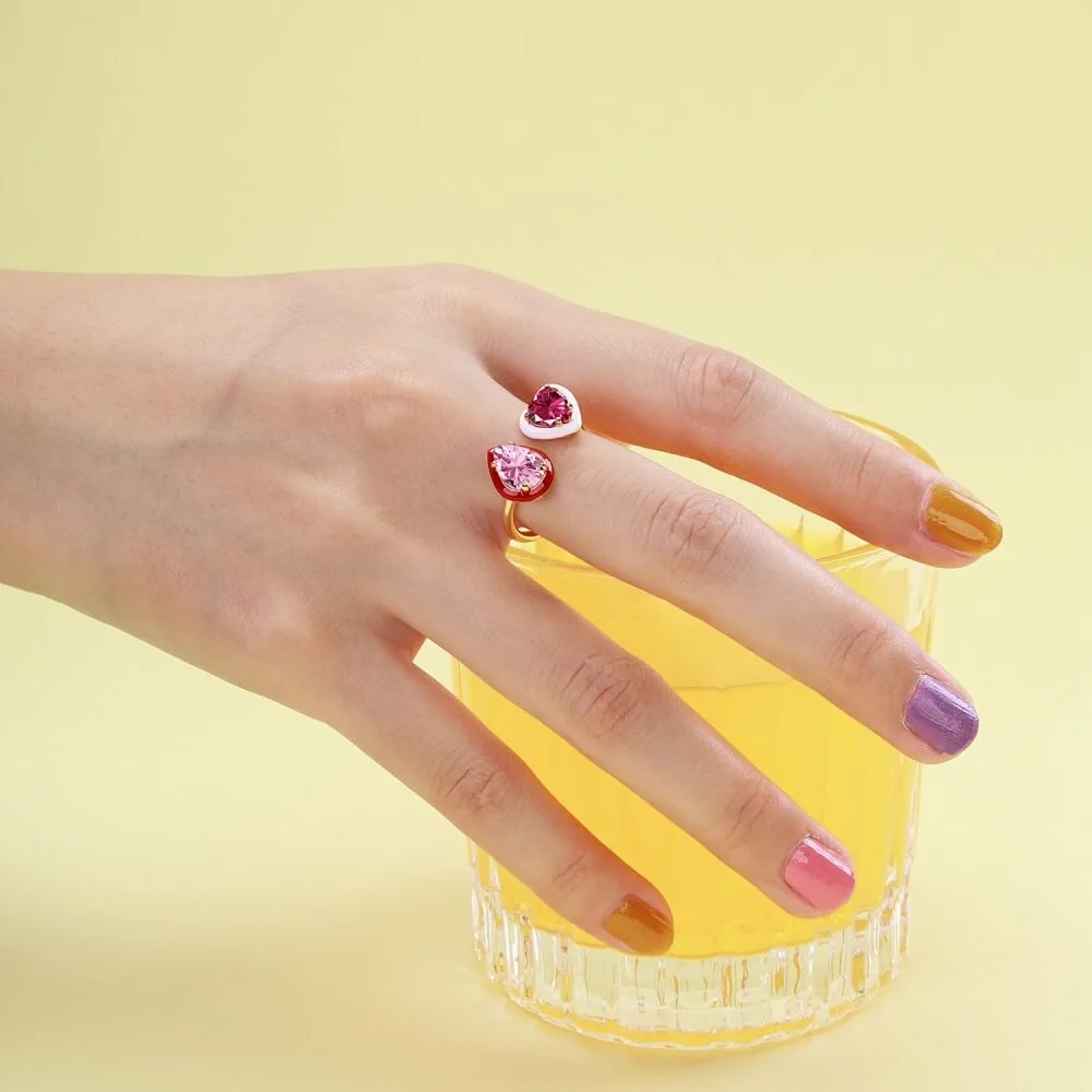 The enamel design of this ring is colorful and eye-catching, featuring drops of vibrant colors that will add a playful touch to any outfit. The Love Drop design is a perfect reflection of your fun-loving and energetic personality. The combination of the open ring design and enamel colors makes this ring a perfect accessory for everyday wear, adding a pop of color to your outfits and making you stand out from the crowd.