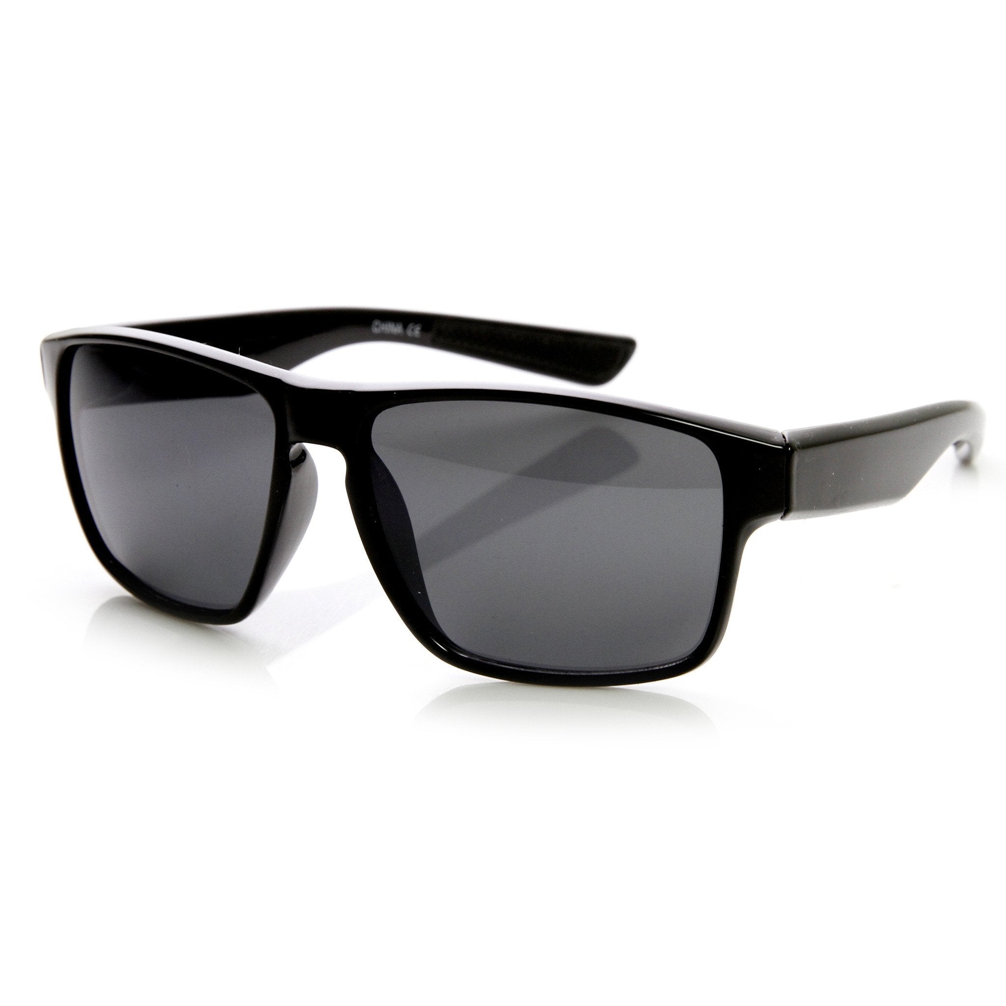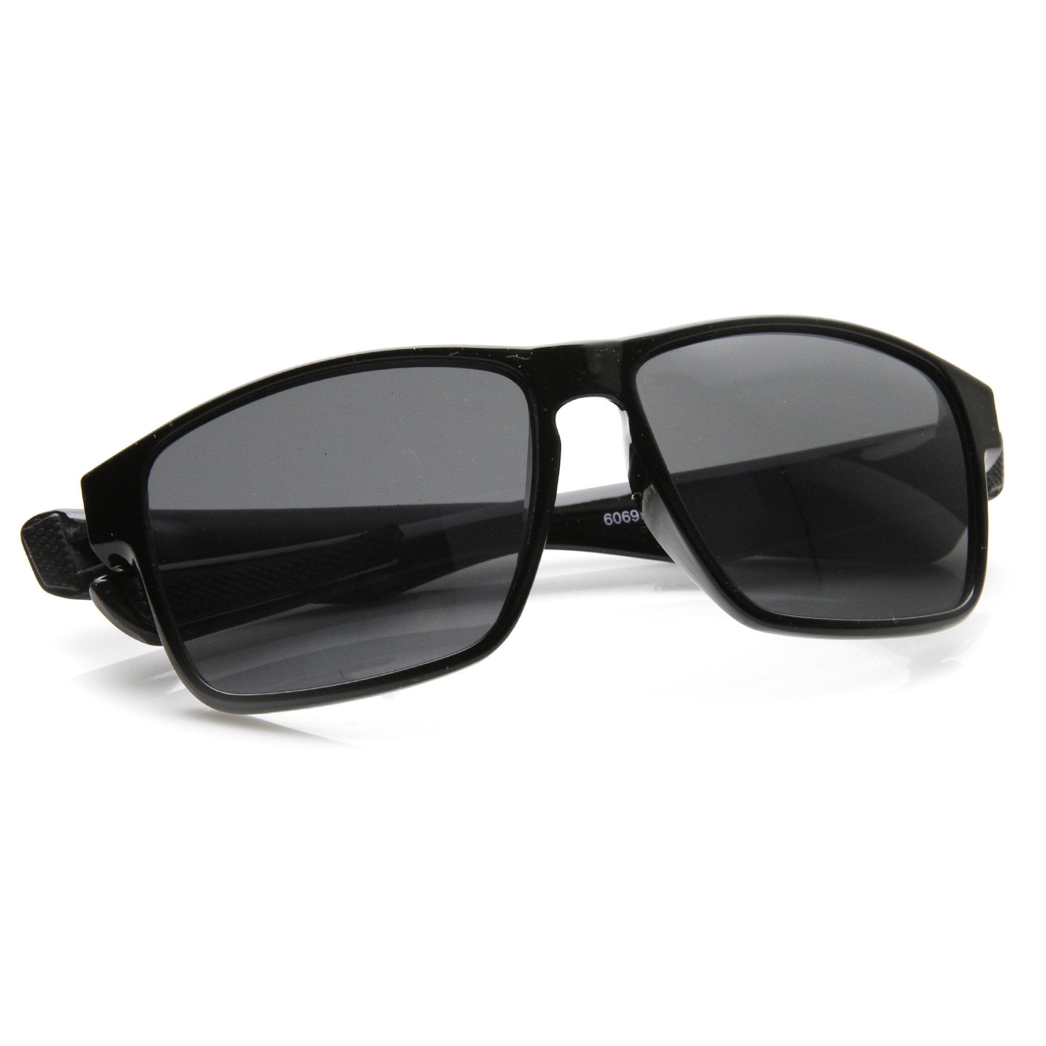 Mod square action sports sunglasses that features bold wide temples and a keyhole nose bridge for a better fit. Perfect for anyone in need of a stylish wider fitting action sports frame this sunny season. Made with a plastic based frame, pinned hinges and UV400 protected polycarbonate lenses.