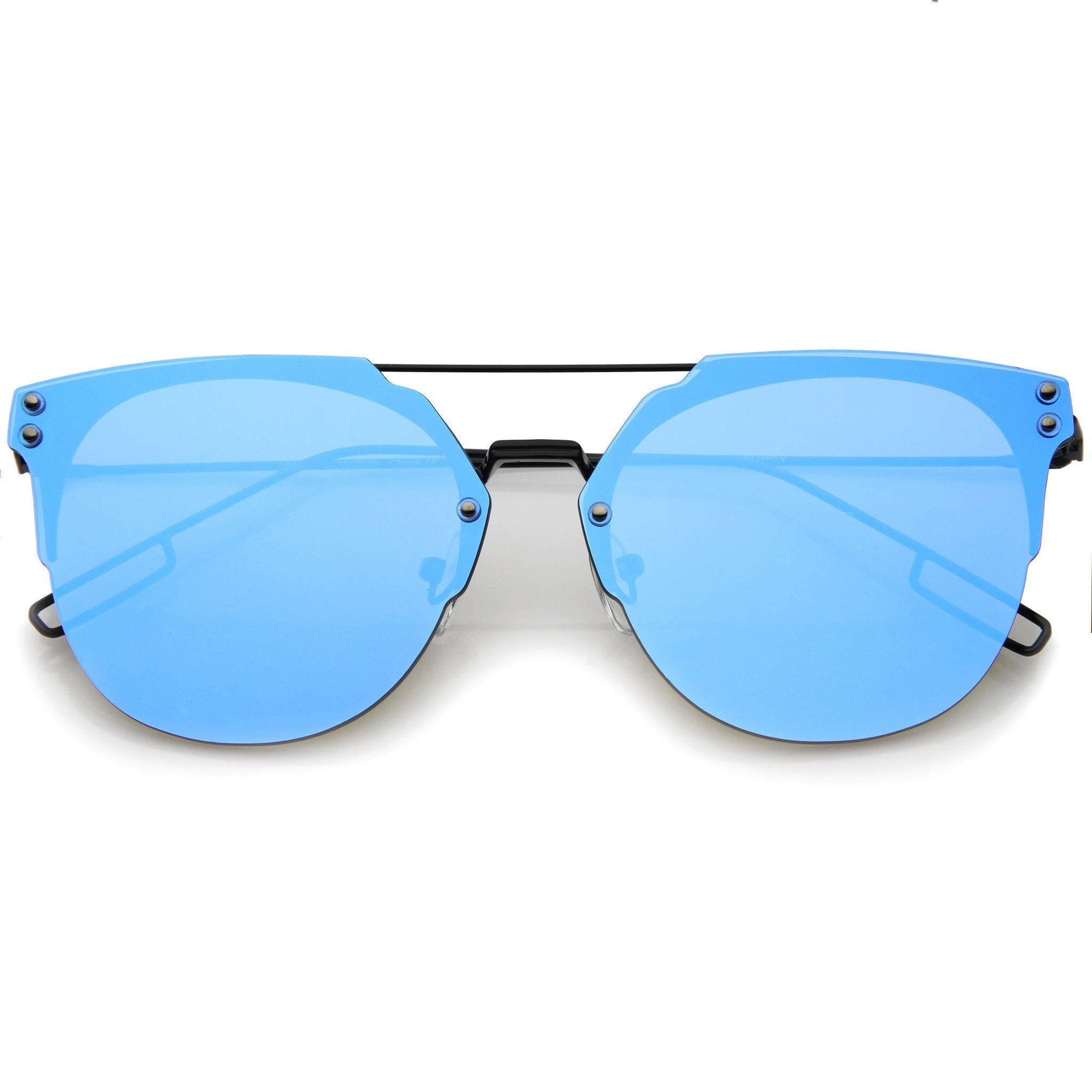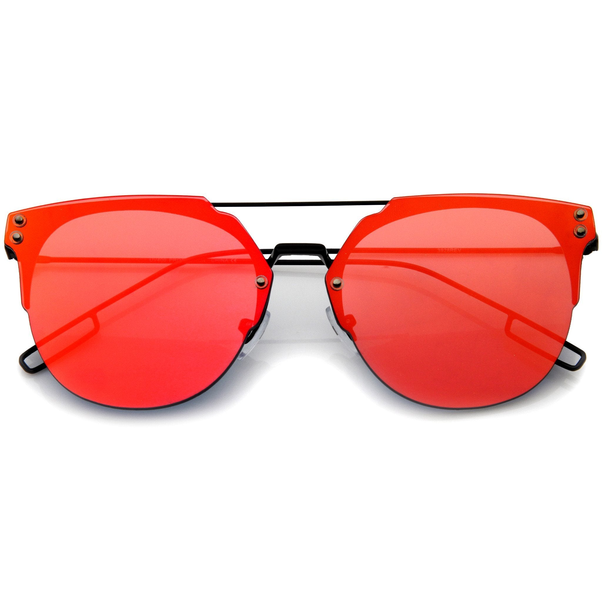 Ultra modern and ultra thin, these avant-garde rimless pantos shaped sunglasses are constructed with a light-as-a-feather metal frame. Modern features also include ultra slim wired hook temples, double-bridged brow, and a flat lens for a stylish flush look. Made from a wire based frame, English style nose pieces and UV400 protected polycarbonate mirrored lens.