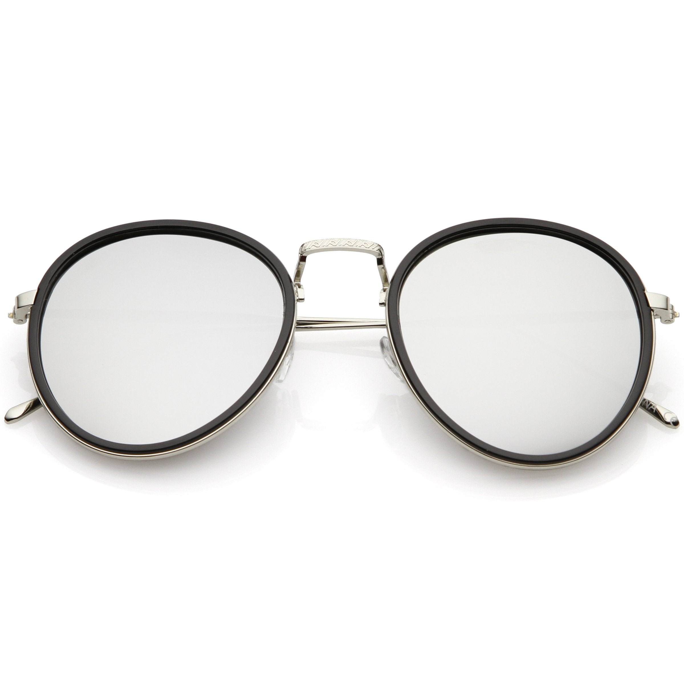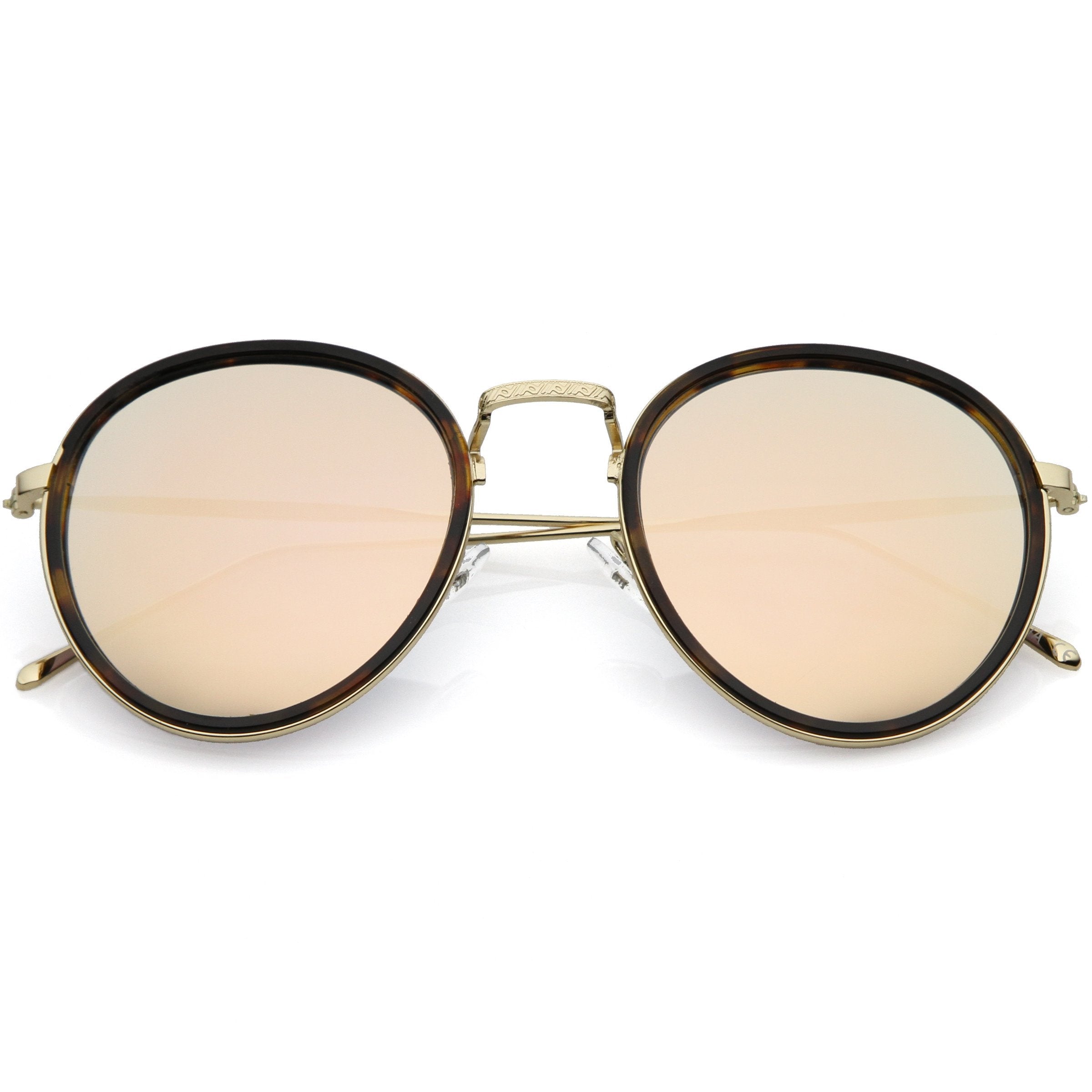 Make a bold and modern statement in these round color mirrored sunglasses. Designed with ultra slim metal arms with added engraved detail to give it a sleek and simple finish. Add this style to your accessory closet to add a little color pop. Finished with a plastic and metal based frame, adjustable English style nose pieces, metal hinges, and 100% UV protected lenses.