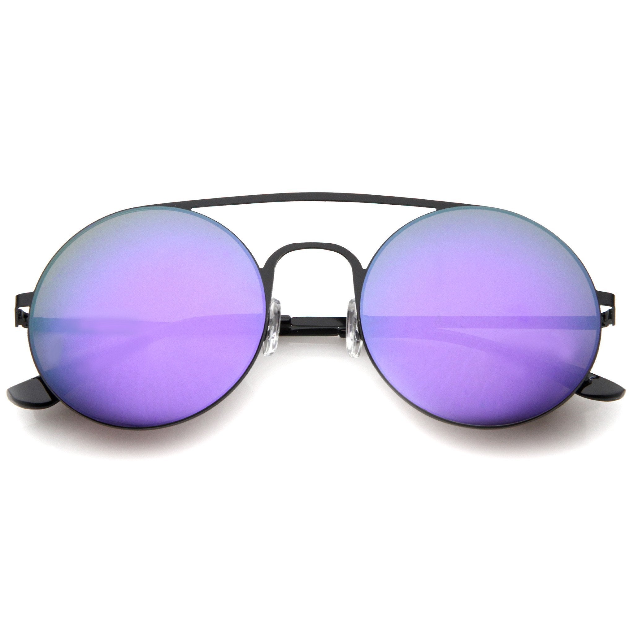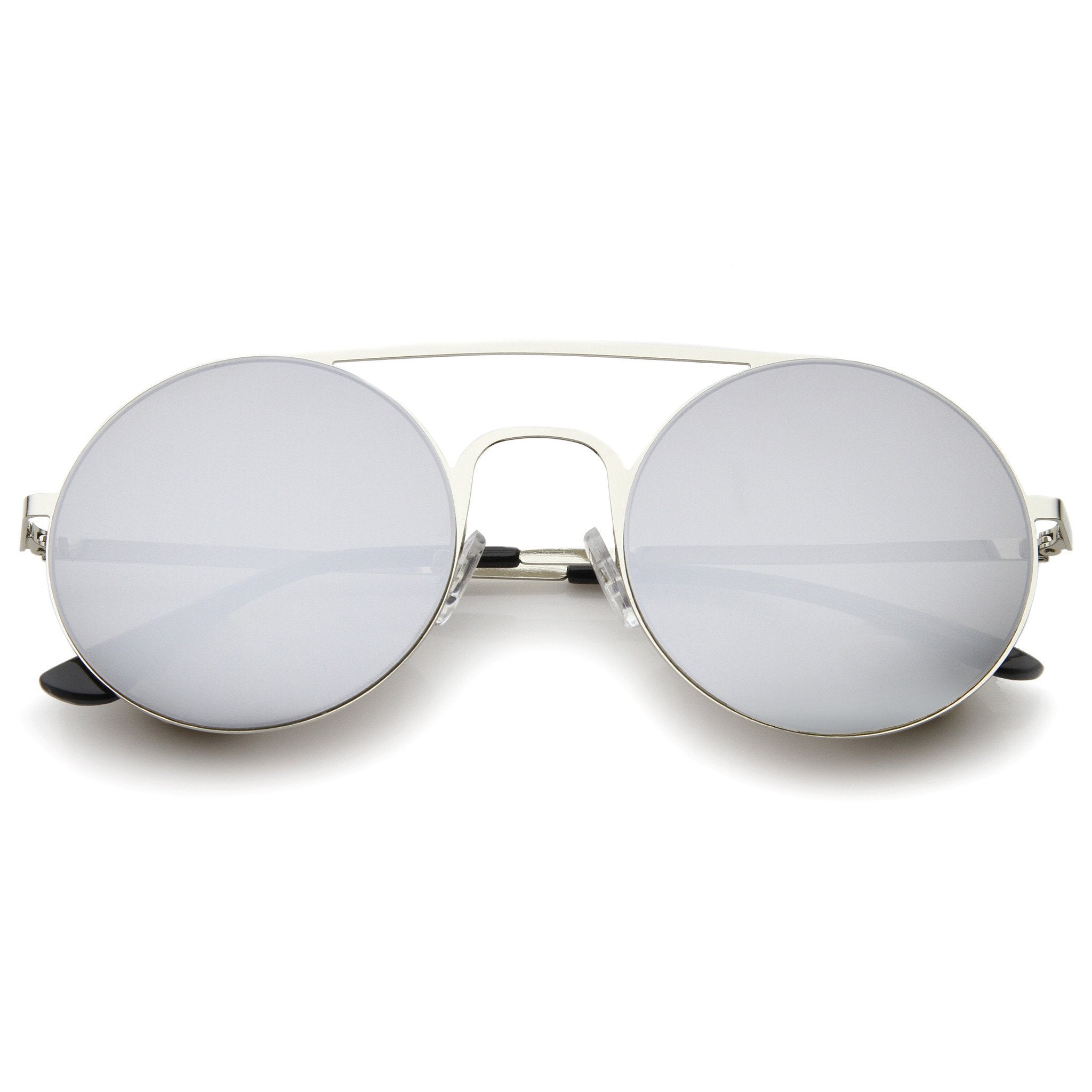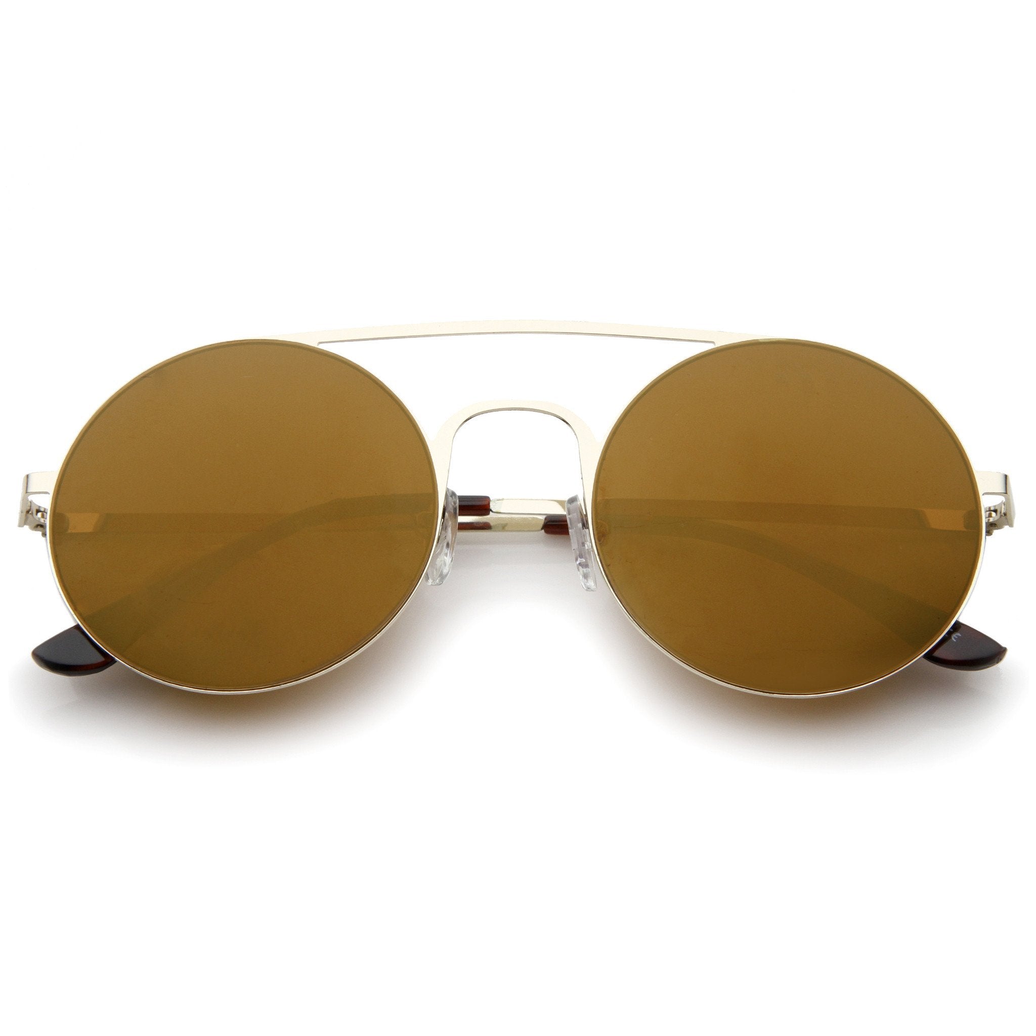 Ultra luxurious and sophisticated, these round sunglasses are exquisitely crafted with a slim metal frame for a lightweight feel. Stunning colored mirror lenses and a sleek double nose bridge complete this elegant and chic style. Versatile to wear every day, these minimal round sunglasses are a must-have this season. Made with a metal based frame, English style nose pieces, metal hinges, and reflective UV400 protective lenses.