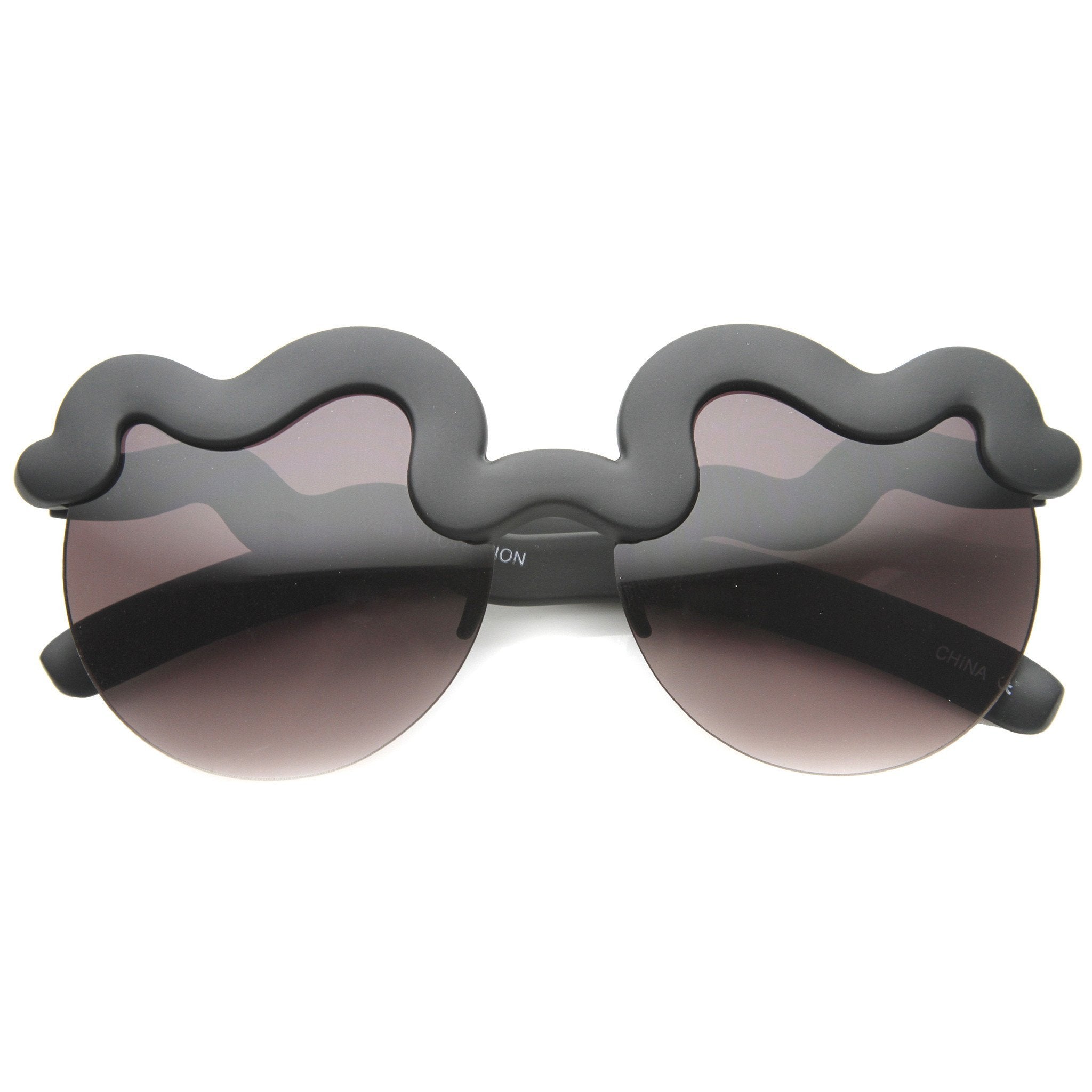This is a Round frame that features a matte soft touch squiggly line design on top of the frame. Great for any occasion! Made with a plastic frame, metal hinges and gradient polycarbonate UV protected lenses.