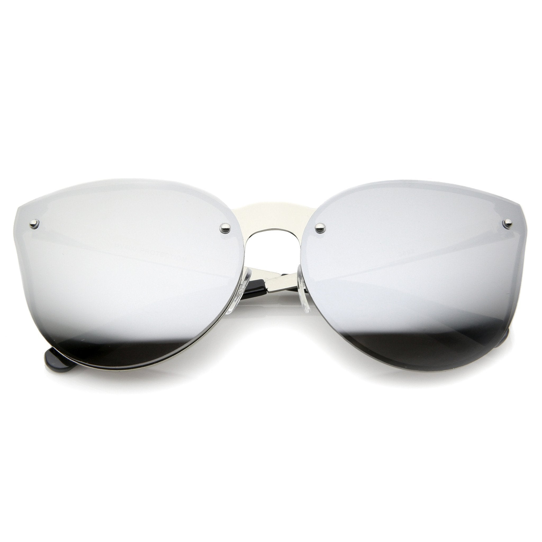 Rimless Cat Eye Shield Mirror Lens Sunglasses