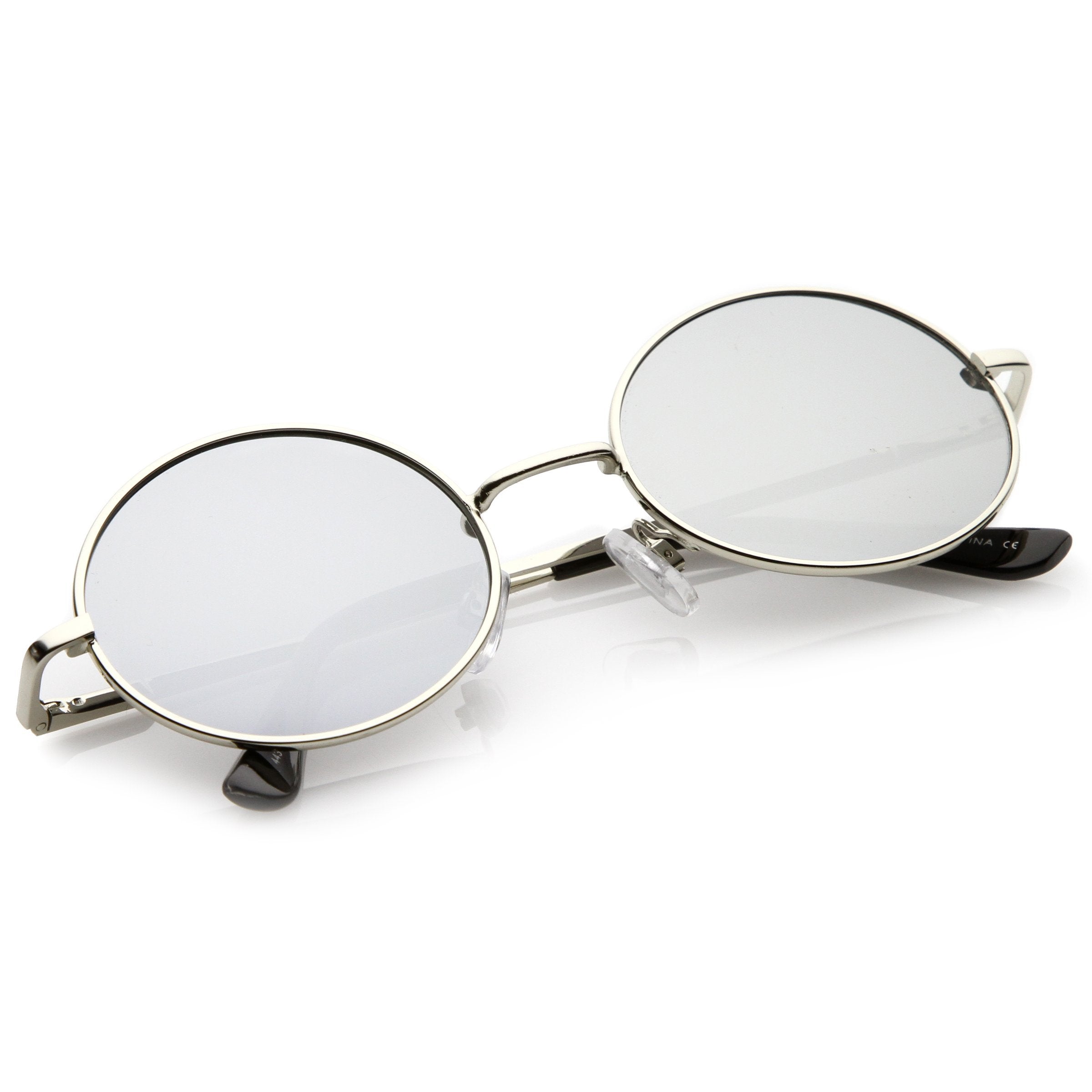 Retro Fashion Oval Mirrored Flat Lens Sunglasses