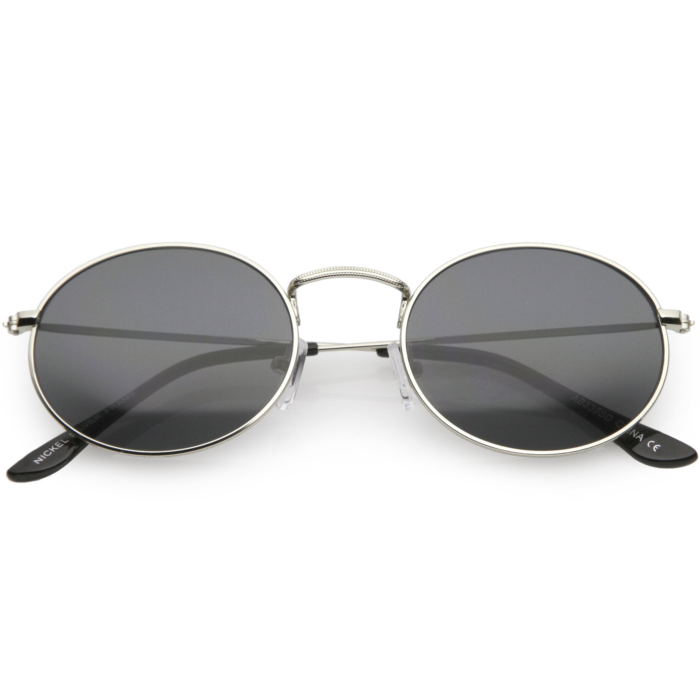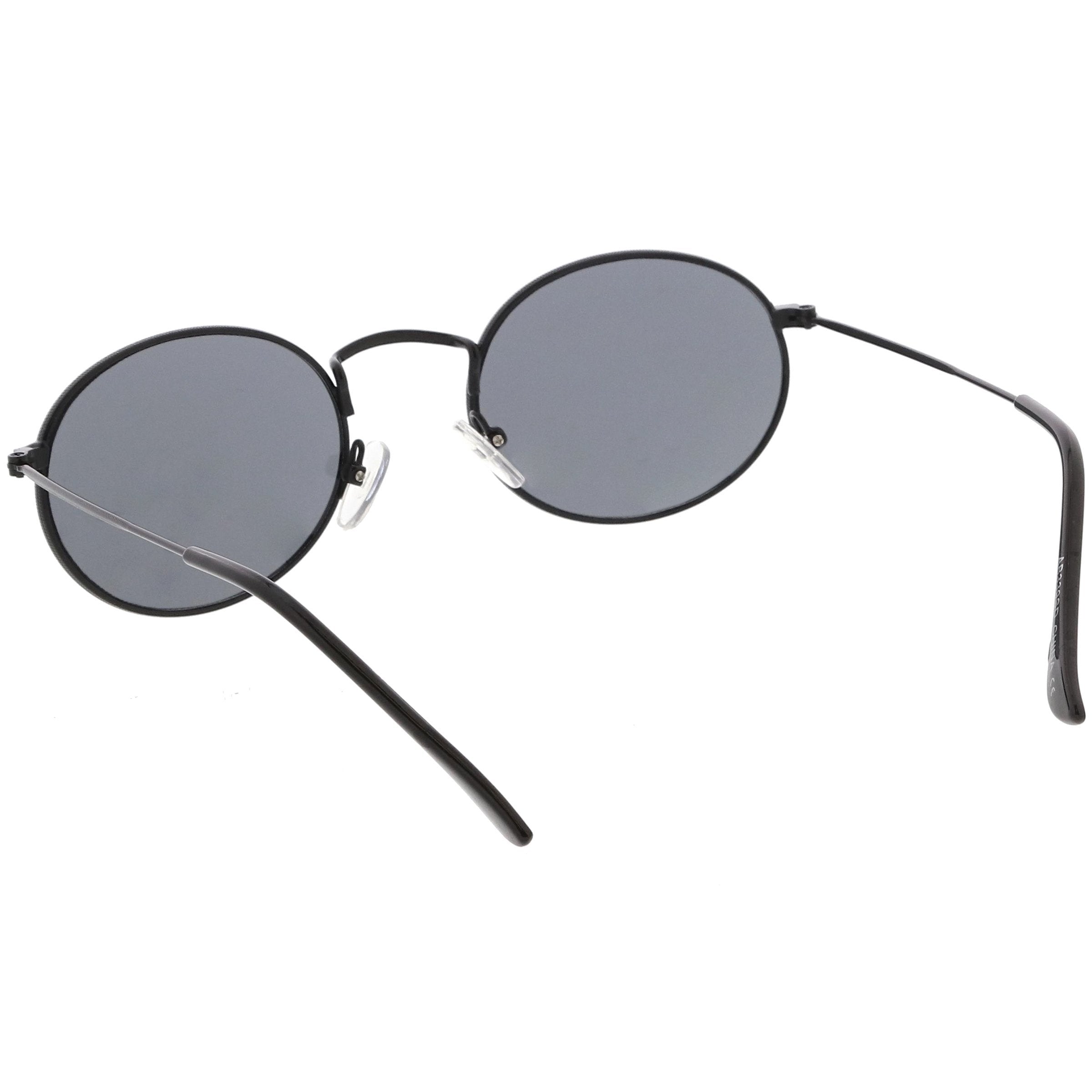 A 90's inspired style with its small design, these metal oval sunglasses are exquisitely crafted with neutral colored oval lenses and super slim metal arms. With it's lightweight feel, these small oval sunglasses are perfect for creating a retro look. Made with a metal based frame, adjustable English style nose pieces, metal hinges, and 100% UV protected lenses.