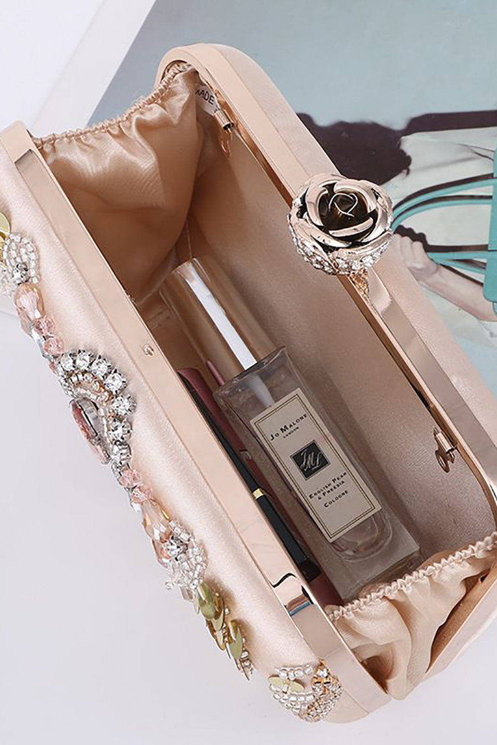 Sparkly Sequins Blush Evening Party Handbag with Beading